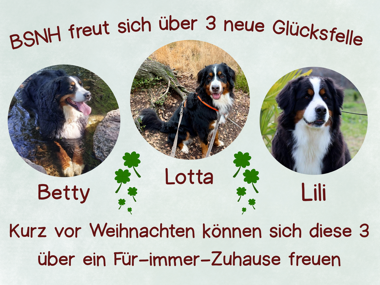 Wir sind ein Kreis von Berner Sennenhundliebhabern und -besitzern, die sich gemeinsam schon seit längerer Zeit aktiv im Tierschutz engagieren.